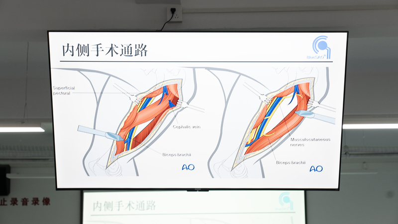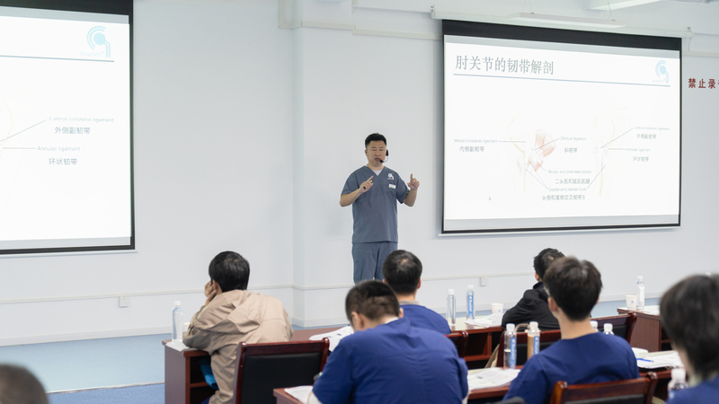 课程无缝衔接,贾新生老师随即引领大家深入“肱骨骨折”的知识殿堂。贾老师从各类骨折的分型切入,层层剖析,细致讲解了从手术通路选择到术中关键细节的全流程操作要点,并结合大量临床病例,让复杂理论变得直观可感。紧随其后的实操环节,更是确保所有知识即刻转化,学以致用。