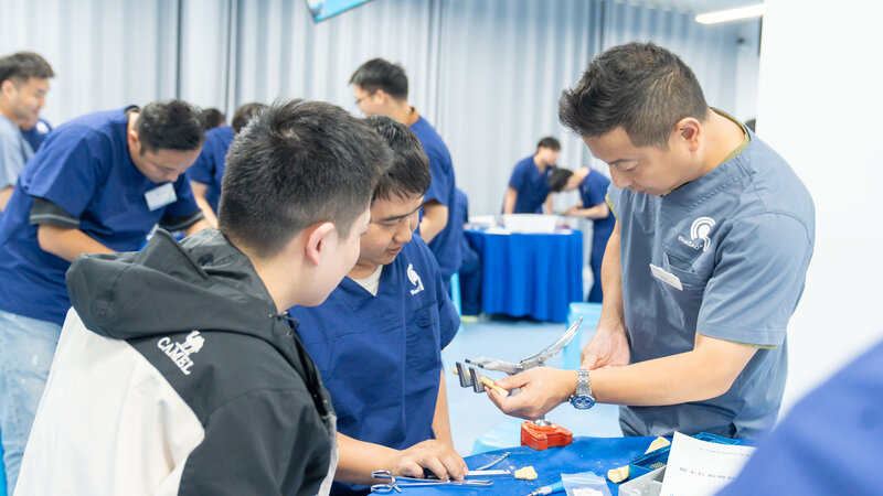 理论课程的帷幕刚刚落下,实践提升的征程即刻启航!邵志伟老师与陶天亮老师将继续领衔,带您深度解锁环扎钢丝技术实操要点。实操现场,贾新生老师、李永岐老师、邵志伟老师、陶天亮老师将组成专业指导团,全程游走于各组之间。从手法规范到细节把控,从问题排查到技巧优化,每位学员的操作都能得到四位老师的精准点拨与实时辅助,让您在亲自动手中吃透技术要点,扎实掌握实操本领!