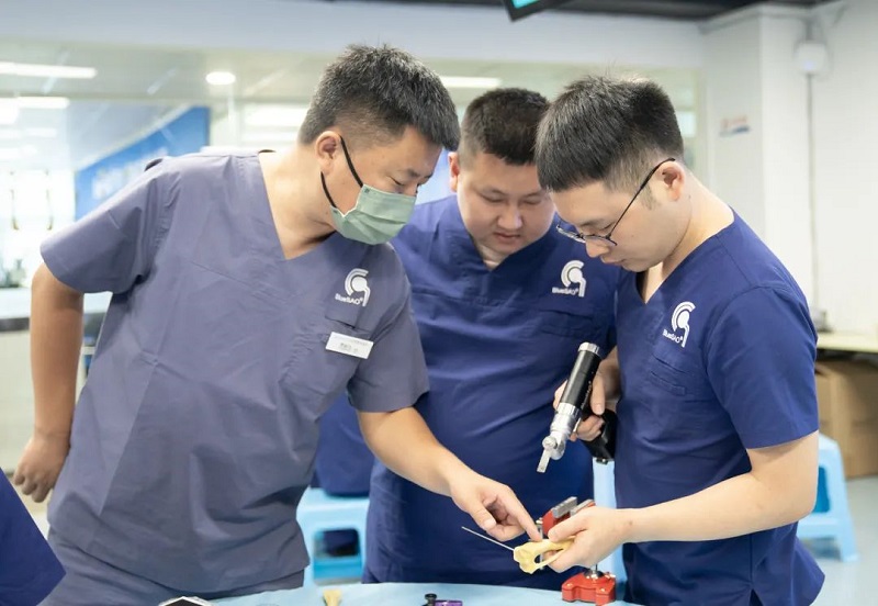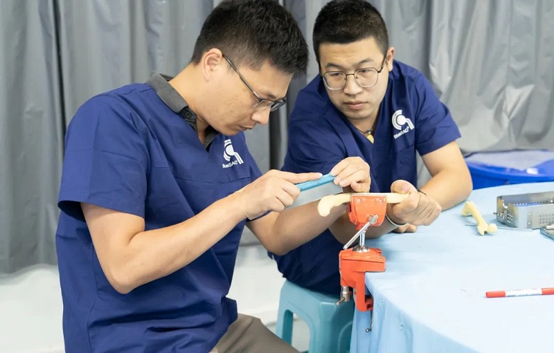 下午的干式实操课程首先由周珞平老师和贾新生老师先后演示股骨与胫骨畸形矫正的实操项目,在周珞平、贾新生和牛金波三位老师的指导下每个学员都顺利的完成了自己的实操项目。
